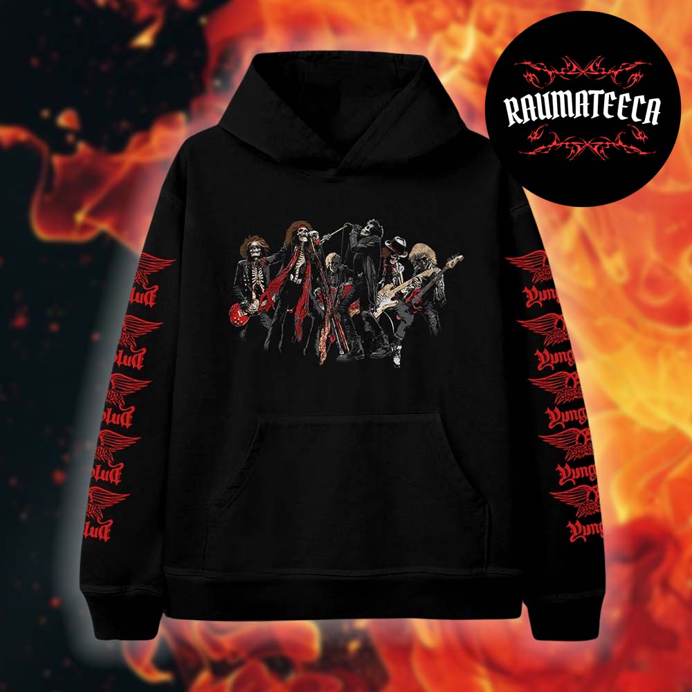 👉 Shop the Aerosmith & Yungblud Complex LA Pop Up Shop One More Time Skeleton Hoodie at Raumateeca today.