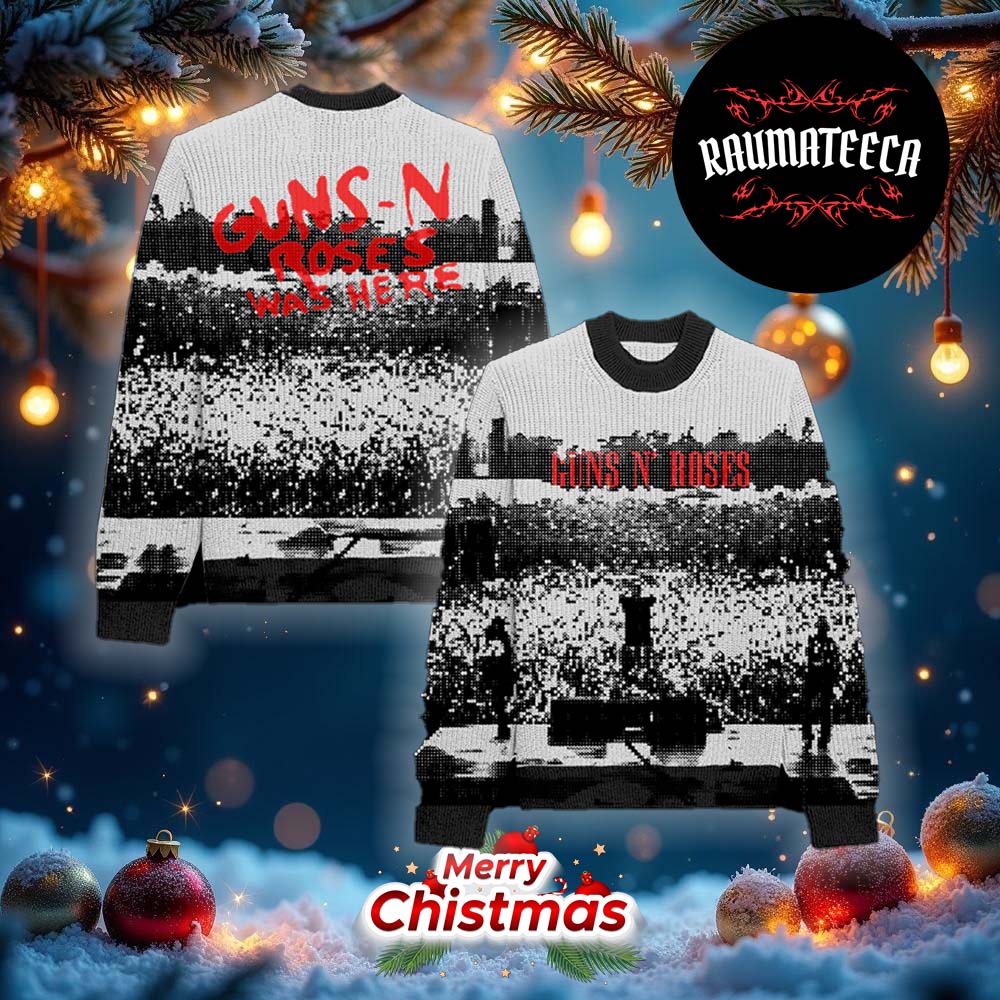 Your search for the perfect Christmas sweater concludes with the Guns N Roses Holiday Collection Knit Concert Ugly Christmas Sweater from Raumateeca. This outstanding Christmas sweater is your ultimate companion for festive gatherings and events—an absolute attention-grabber that will brighten up your Christmas holiday!