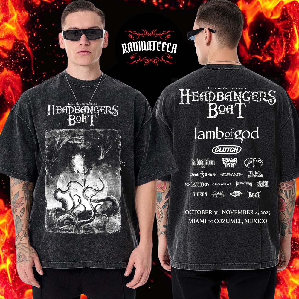 Lamb Of God Merch Headbangers Boat 2025 Collection HiCon Lineup Two Sided Washed T-Shirt