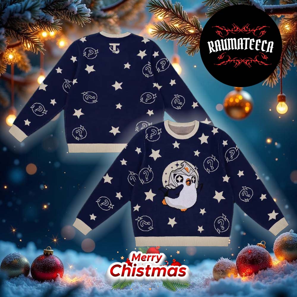 Your search for the perfect Christmas sweater concludes with the Riot Games Merch Pengu Into The Stars Teamfight Tactics Ugly Christmas Sweater from Raumateeca. This outstanding Christmas sweater is your ultimate companion for festive gatherings and events—an absolute attention-grabber that will brighten up your Christmas holiday!